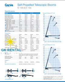 Xe nâng người Genie S-120 Chiều cao làm việc tối đa 36M-38M- Được sản xuất từ hãng xe nâng người danh tiếng và uy tín số 01 thế giới. Hãng xe nâng Genie- Mỹ (USA). Đáp ứng những tiêu chí khắt khe nhất mà mọi công trình yêu cầu phải có: