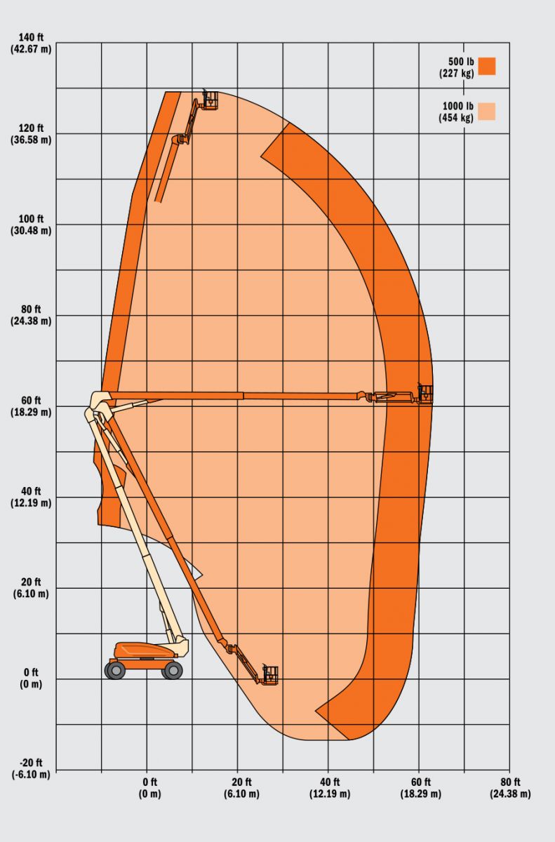 Độ cao nâng và với vào trong 18.44 m / 60.5 ft