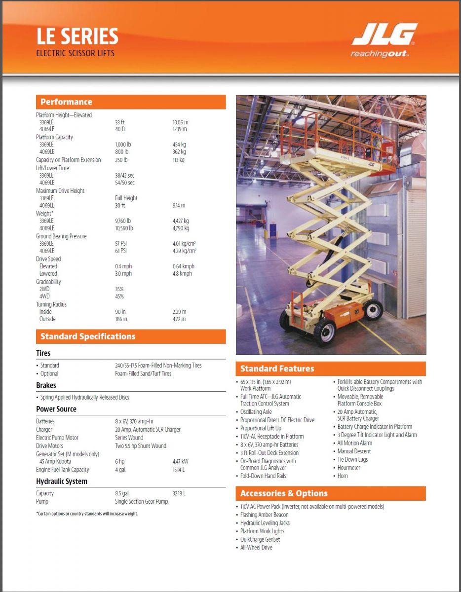 Thiết kế xe nâng người cắt kéo, thang nâng cắt kéo hay xe nâng người Scissor Lift JLG 4069LE 14M-16M đáp ứng những tiêu chí khắt khe nhất mà mọi công trình trên thế giới yêu cầu phải có: