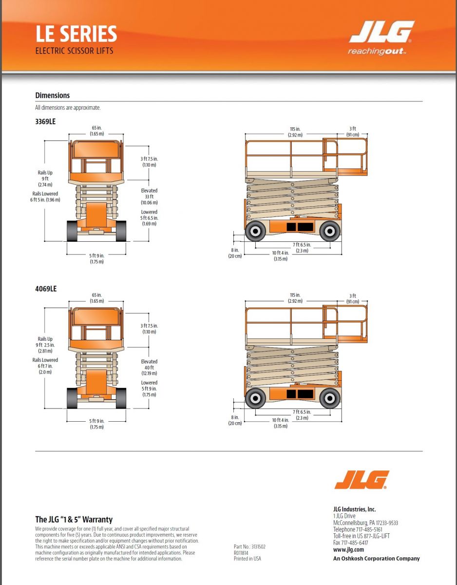 Được sản xuất từ hãng xe nâng người danh tiếng và 01 trong 02 hãng xe uy tín Top đầu thế giới. Hãng xe nâng người cắt kéo, thang nâng cắt kéo hay xe nâng người Scissor Lift JLG 4069LE 14M-16M JLG- Mỹ (USA). Chiếm thị phần gần như 70% trên thế giới. Không phải ngẫu nhiên hãng xe nâng người cắt kéo, thang nâng cắt kéo hay xe nâng người Scissor Lift JLG 4069LE 14M-16M (USA) luôn đứng Top bảng xếp hạng tại các thị trường xe nâng trên thế giới trong đó có Việt Nam chúng ta.