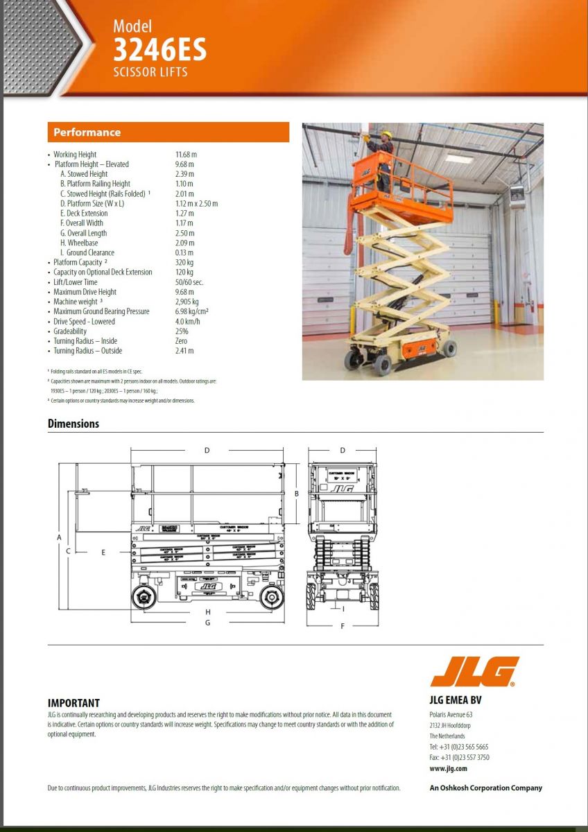 Xe nâng người cắt kéo, thang nâng cắt kéo hay xe nâng người Scissor Lift JLG 3246 ES 10M-12M