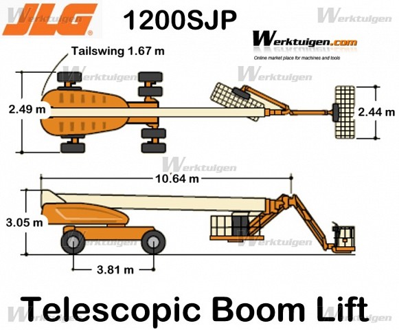 Thiết kế xe nâng người cần thẳng hay còn gọi là cần telescopic Boom JLG 1200SJP 36M-38M Làm việc- đáp ứng những tiêu chí khắt khe nhất mà mọi công trình trên thế giới yêu cầu phải có:
